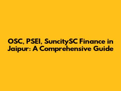 Hey guys! Ever wondered about navigating the financial landscape, especially when it comes to investments and the stock market? Let's dive into a comprehensive guide focusing on OSC, PSEI, and SuncitySC finance in the vibrant city of Jaipur. This piece is designed to provide you with a clear understanding of these financial concepts, how they relate to the Jaipur market, and what opportunities might be available for you. We'll be breaking down each element, ensuring you grasp the essentials whether you're a seasoned investor or just starting out. Buckle up, because we're about to embark on a journey through the fascinating world of finance!