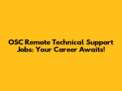 OSC Remote Technical Support Jobs: Your Career Awaits!