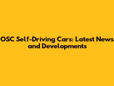OSC Self-Driving Cars: Latest News And Developments