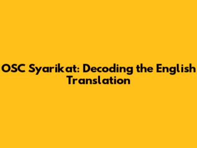 OSC Syarikat: Understanding The English Translation