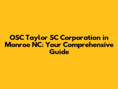 OSC Taylor SC In Monroe NC: Your Guide