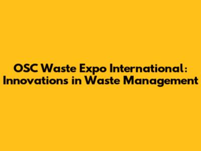 OSC Waste Expo International: Innovations In Waste Management