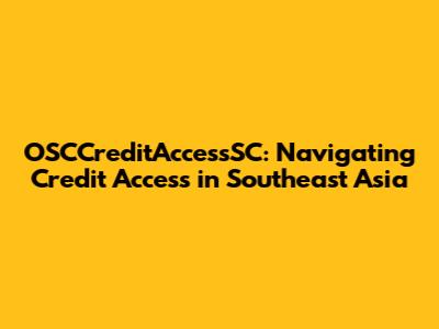 OSCCreditAccessSC: Navigating Credit Access In Southeast Asia