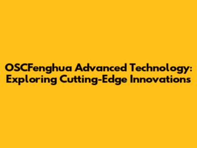 Hey guys! Ever heard of OSCFenghua? If not, buckle up because we're about to dive deep into some seriously cool advanced technology! In this article, we're going to explore what makes OSCFenghua a name to watch in the tech world. We will cover their innovations and why they matter. So, grab your favorite beverage, sit back, and let's get started!