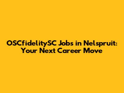 OSCfidelitySC Jobs In Nelspruit: Your Next Career Move