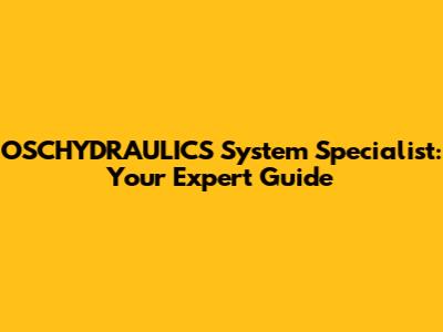 OSCHYDRAULICS System Specialist: Your Expert Guide