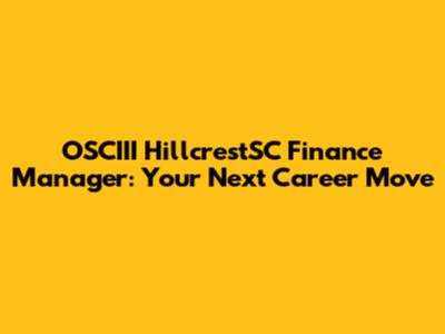 OSCIII HillcrestSC Finance Manager: Career Opportunity