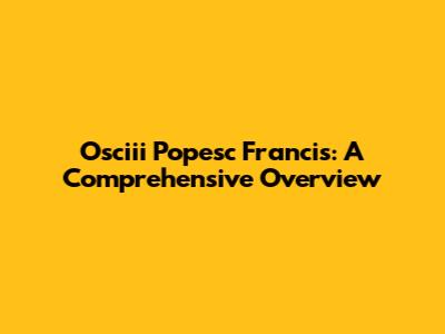 Hey everyone! Let's dive into the fascinating world of Osciii Popesc Francis, a name that's been buzzing around lately. This article is your one-stop shop for everything you need to know about this individual, from the latest news and updates to a deeper understanding of their background and achievements. We'll be covering a lot of ground, so buckle up, and let's get started. I promise you'll find it super interesting!