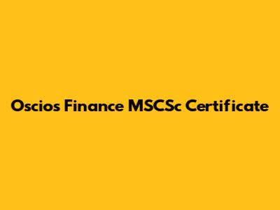 What is the Oscios Finance MSCSc Certificate?