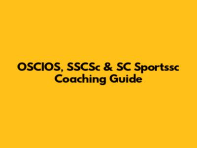 OSCIOS, SSCSc & SC Sportssc Coaching Guide