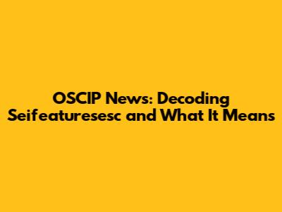 OSCIP News: Decoding Seifeaturesesc And What It Means