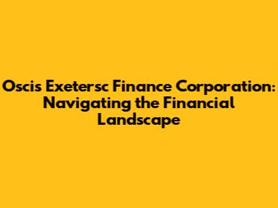 Hey guys! Ever heard of Oscis Exetersc Finance Corporation and wondered what they're all about? Well, you've come to the right place! In today's financial climate, understanding the key players and how they operate is super important. So, let's dive into the world of Oscis Exetersc Finance and see what makes them tick. We'll explore their services, their impact, and how they fit into the broader financial ecosystem. Think of this as your friendly guide to navigating the financial landscape with a focus on this particular corporation.