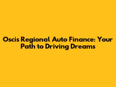 Oscis Regional Auto Finance: Your Guide To Car Ownership