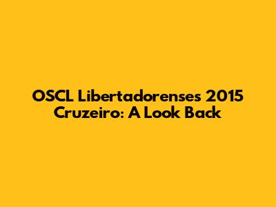 OSCL Libertadorenses 2015 Cruzeiro: A Look Back