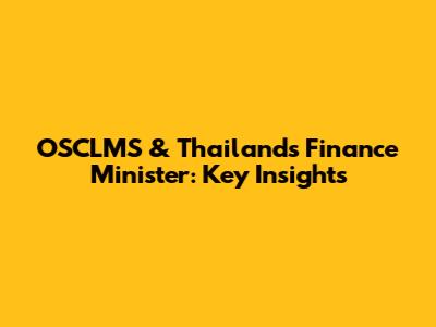 OSCLMS & Thailand's Finance Minister: Key Insights