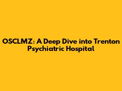 OSCLMZ: A Deep Dive Into Trenton Psychiatric Hospital