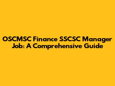 OSCMSC Finance SSCSC Manager Job: A Comprehensive Guide