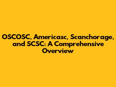 OSCOSC, Americasc, Scanchorage, And SCSC: A Comprehensive Overview