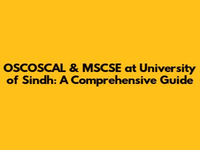 OSCOSCAL & MSCSE At University Of Sindh: A Comprehensive Guide