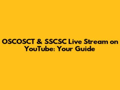 OSCOSCT & SSCSC Live Stream On YouTube: Your Guide