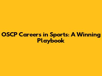 OSCP Careers In Sports: A Winning Playbook