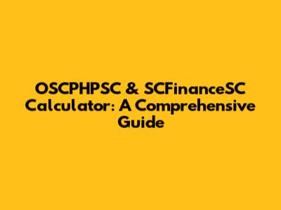 OSCPHPSC & SCFinanceSC Calculator: A Comprehensive Guide