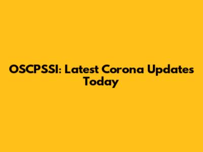 OSCPSSI: Latest Corona Updates Today