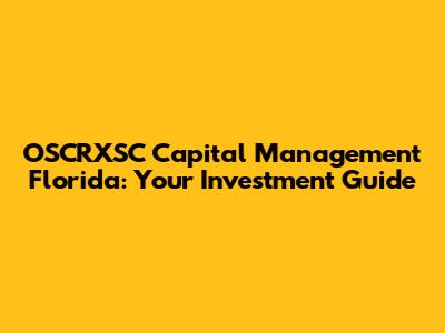 OSCRXSC Capital Management: Your Florida Investment Guide