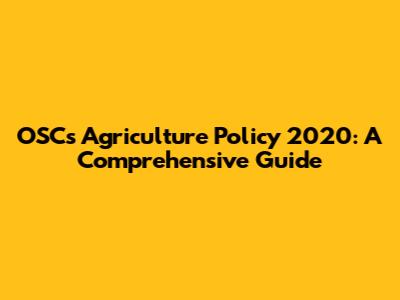 OSC's Agriculture Policy 2020: A Comprehensive Guide