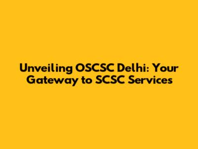 Unveiling OSCSC Delhi: Your Gateway to SCSC Services