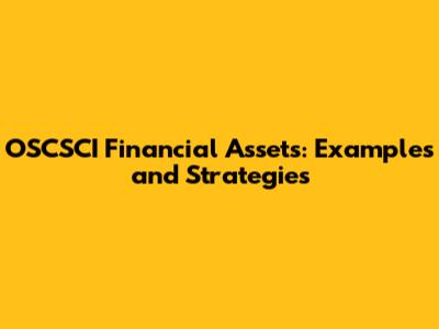 OSCSCI Financial Assets: Examples And Strategies