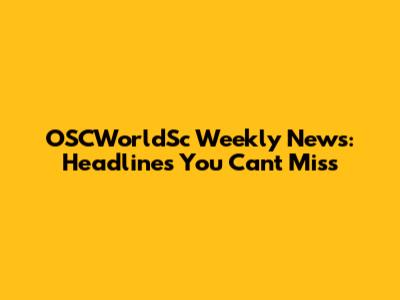 OSCWorldSc Weekly News: Headlines You Can't Miss