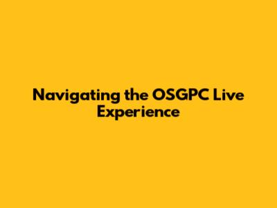 Navigating the OSGPC Live Experience