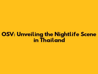 OSV & Nightlife In Thailand: A Traveler's Guide