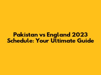 The Pakistan vs England 2023 Schedule: Dates, Times, and Venues
