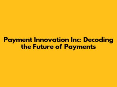 Payment Innovation Inc: Decoding The Future Of Payments