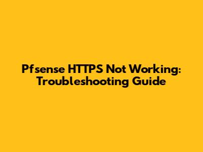 PFSense HTTPS Not Working: Troubleshooting Guide