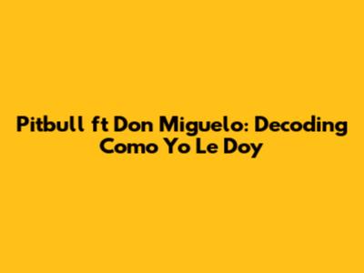 Alright, music lovers! Let's dive deep into the electrifying collaboration between the one and only Pitbull and the sensational Don Miguelo in their hit track, "Como Yo Le Doy." This song is more than just a catchy tune; it's a vibrant explosion of Latin rhythms, infectious energy, and Pitbull's signature swagger. We're going to break down what makes this song so special, explore the lyrical content, and understand why it's a must-have on your party playlist. So, buckle up and let's get started!