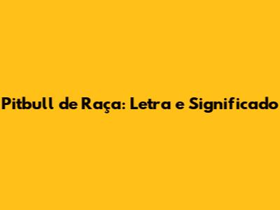 Pitbull De Raça: Letra E Significado