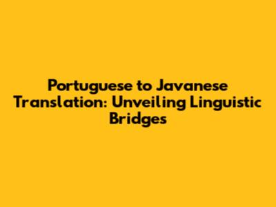 Portuguese To Javanese Translation: A Comprehensive Guide