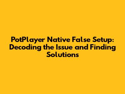PotPlayer Native False Setup: Fixes & Optimization