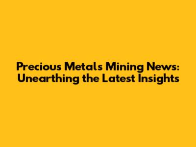 Precious Metals Mining News & Market Insights