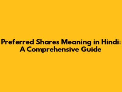 Preferred Shares In Hindi: Meaning & Investment Insights
