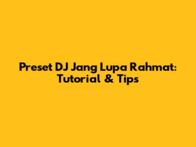 Preset DJ Jang Lupa Rahmat: Tutorial & Tips