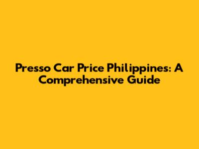 Presso Car Price Philippines: Is It Worth It?