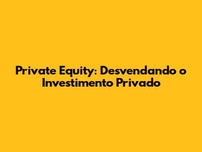 Private Equity: Desvendando O Investimento Privado