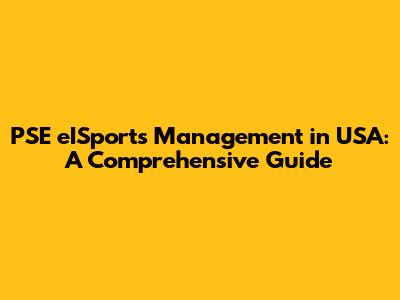 PSE EISports Management In USA: A Comprehensive Guide
