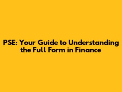 PSE: Your Guide To Understanding The Full Form In Finance