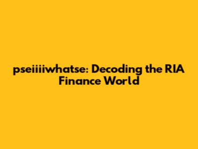 The Role of pseiiiiwhatse in RIA Finance