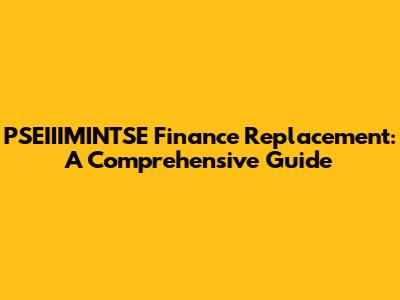 PSEIIIMINTSE Finance Replacement: A Comprehensive Guide